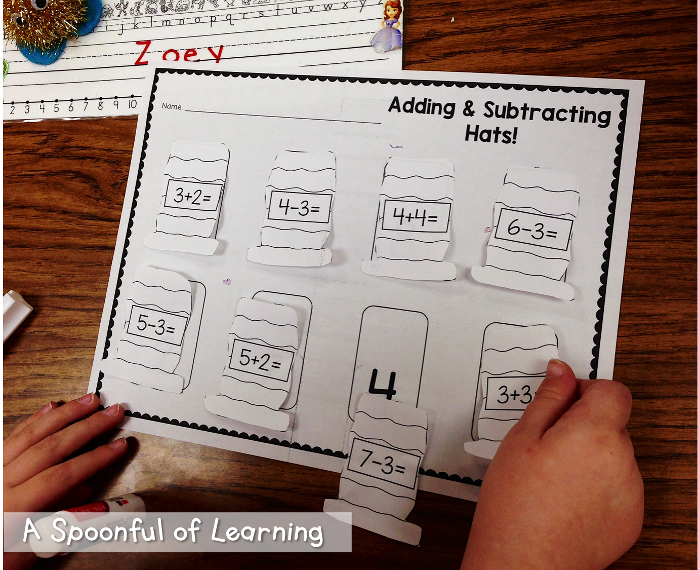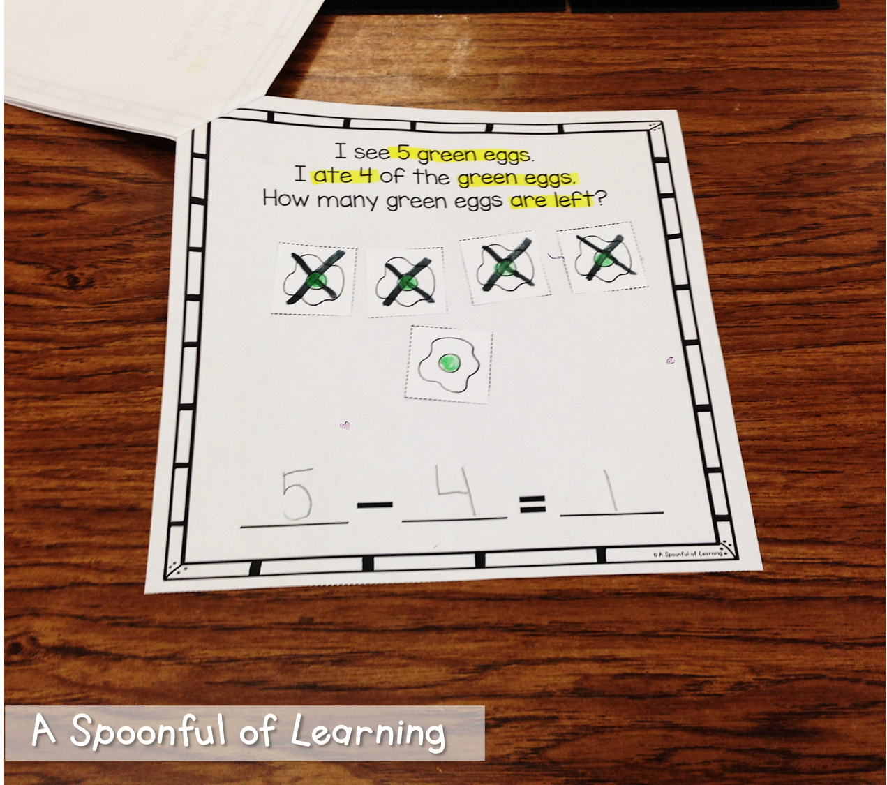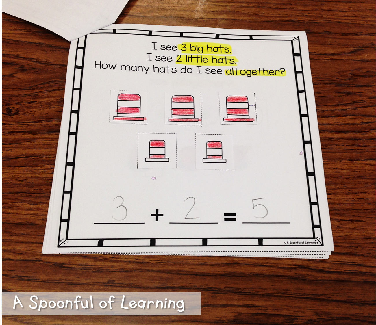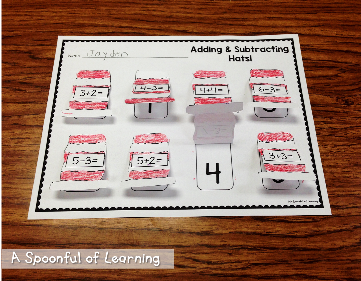 We solved addition and subtraction equations that were also on the hat of the Cat in the Hat. We placed them on top of the answer and glued them so that they would pop up to see the answers. You can grab this activity HERE!