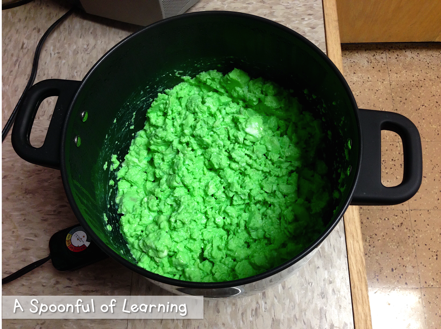 The moment had come that I was nervous about ALL DAY!! It was time to make green eggs!! I have never made it in this pot before and was VERY nervous. On top of that, I am not the best cook in the world! I am awful at cooking to be honest! I let each student crack an egg and we added the green food coloring…