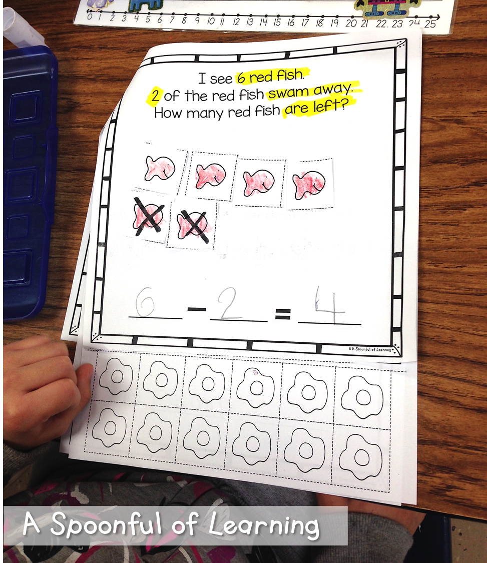 We also created our very own addition stories in a fish bowl! I had my students pick as many fish as they would like, color the fish 2 different colors, and then glue them in the fish bowl. After they did that, they wrote a short addition story to go with it. You can grab this activity HERE!