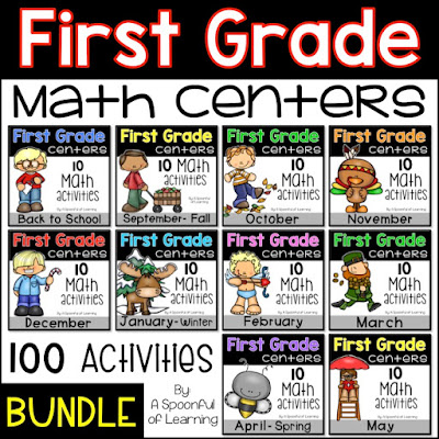 I have also bundled ALL of my First Grade Monthly Math and Literacy Centers in many different ways below. You can click on the picture to check them out.