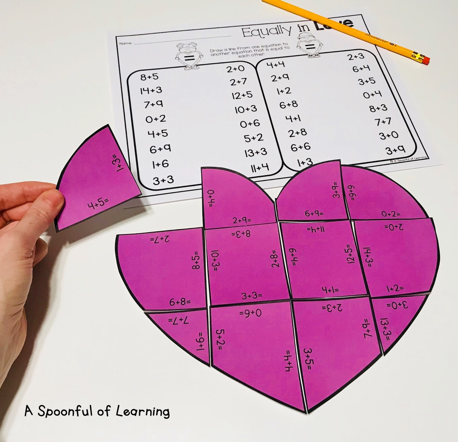 Balanced Equations Puzzle: Students will build hearts by matching 2 equations that are equal to each other. I have included 3 different puzzles (addition, subtraction, and addition/subtraction combined)