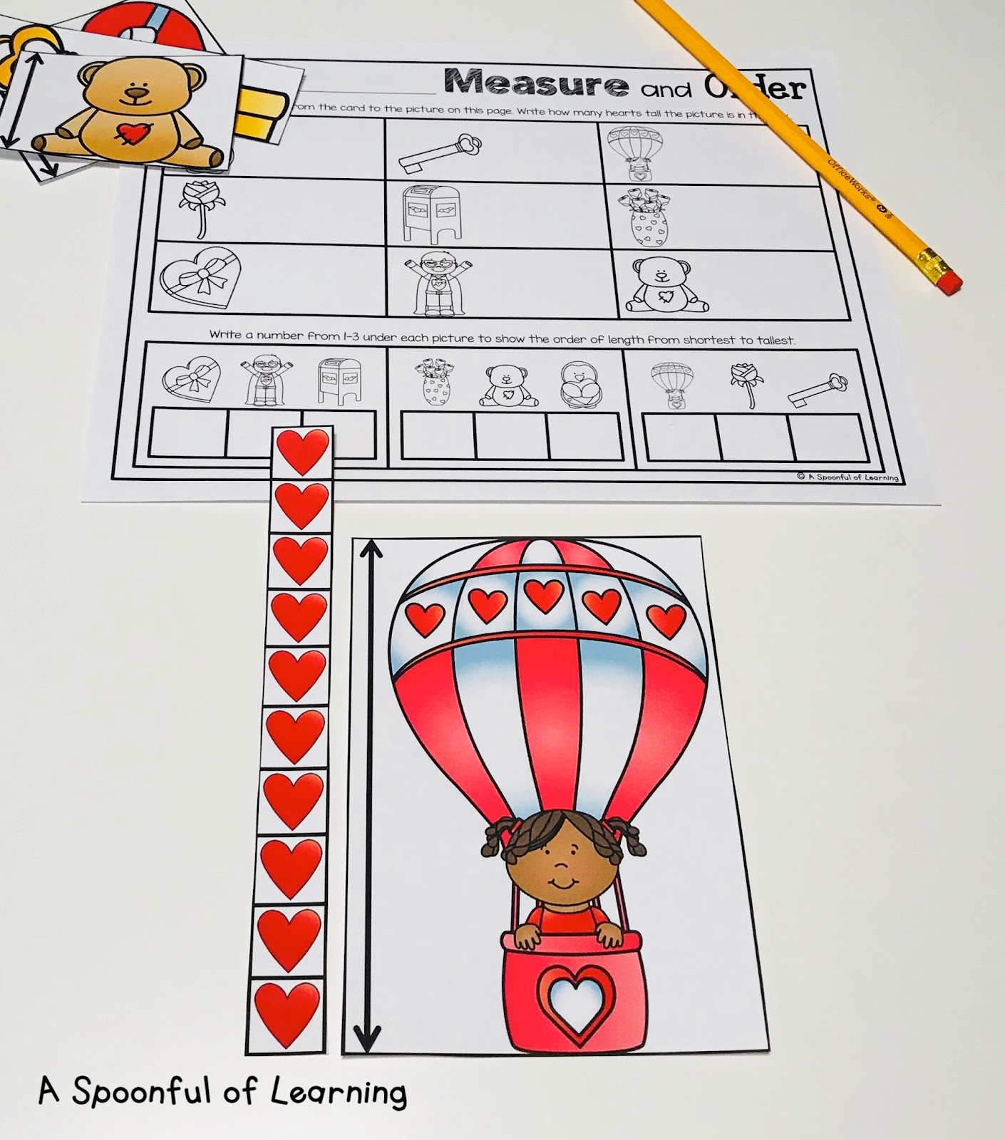 Measuring: Students will use hearts to measure the height of different pictures. They will also order the pictures from smallest to tallest.