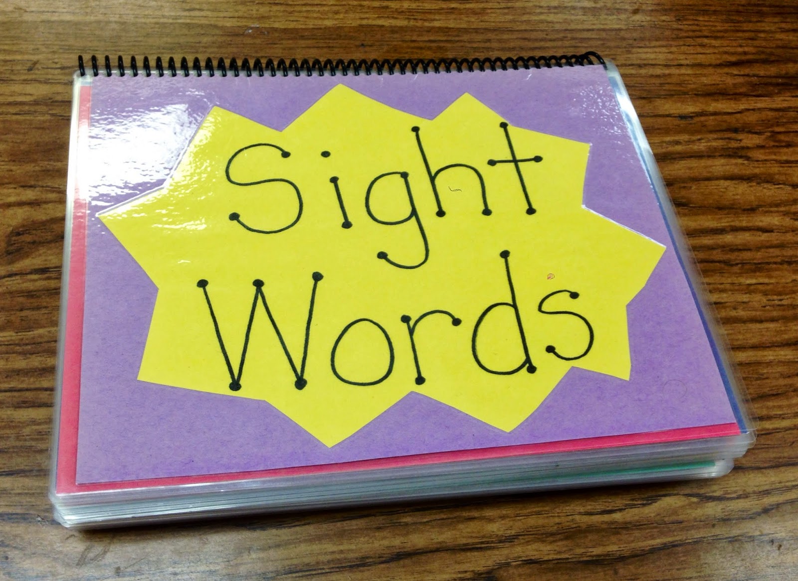 A sight word flip book is SUPER easy to make! Just type sight words one to a page in large font. Then print and mount onto construction paper before laminating. Once you have prepped all of the words you’d like to use, you can bind the sight words into a flip book. (I took my laminated pages to Kinko’s for binding.)
