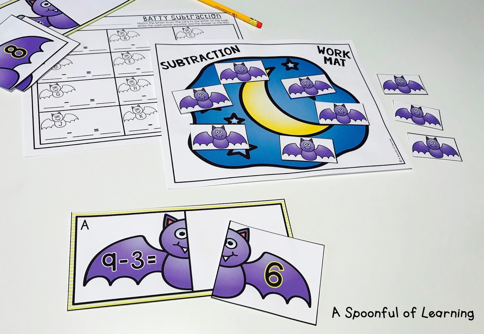 Subtraction: Students will use a work mat to act out and solve different subtraction equations.