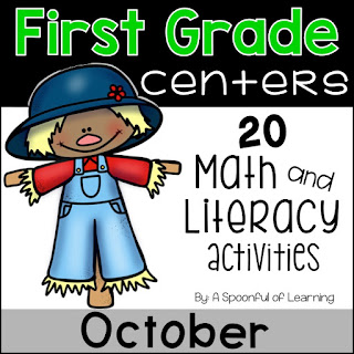 Now that October is here, I wanted to give you all a closer look at my October First Grade Math and Literacy Centers.