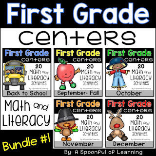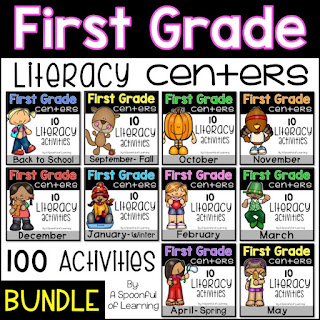 I have also bundled ALL of my First Grade Monthly Math and Literacy Centers in many different ways below. You can click on the picture to check them out.