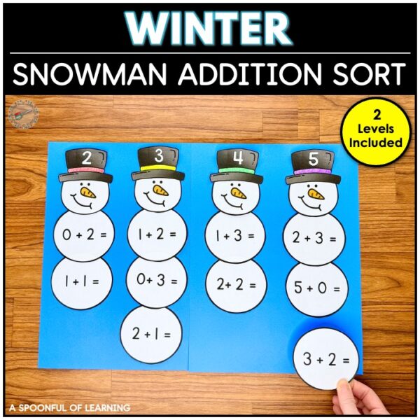 This Snowman Addition Sort is a winter math activity where students solve, sort, and build snowmen using addition equations.