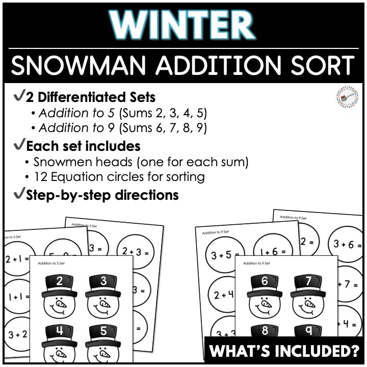 This Snowman Addition Sort is a winter math activity where students solve, sort, and build snowmen using addition equations.