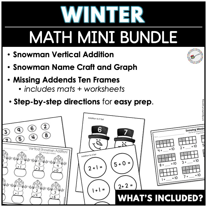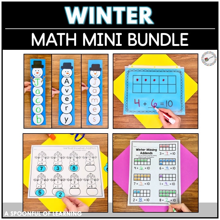 This mini bundle is part of a larger Winter Unit filled with hands-on math, literacy, writing, and craft activities.