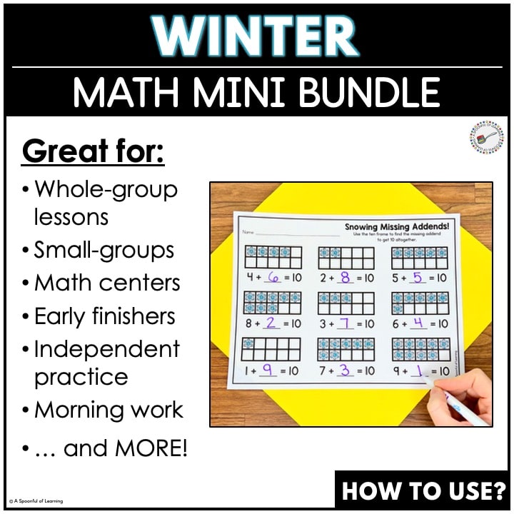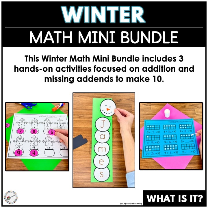 This Winter Math Mini Bundle includes three engaging, hands-on activities designed to help students practice addition and missing addends to make 10 in a fun, low-prep way. These winter-themed activities support number sense while keeping students motivated throughout the winter season.