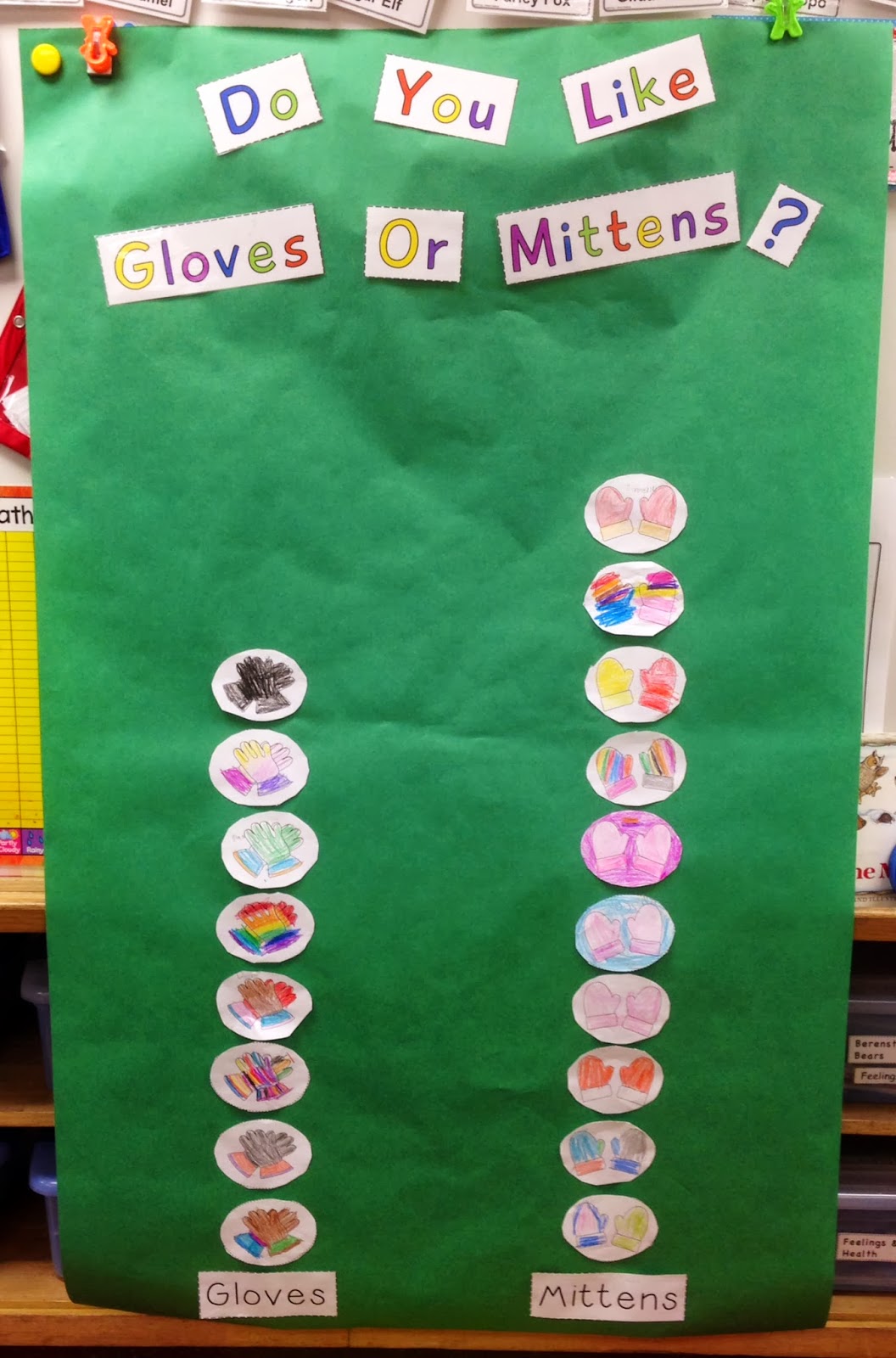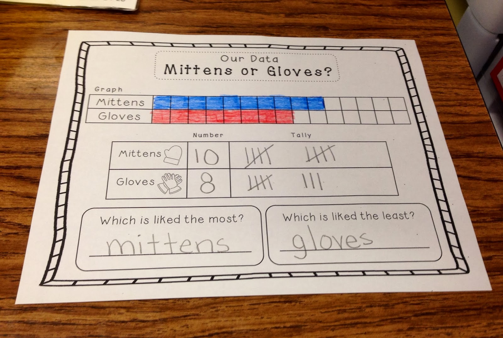 We graphed whether we liked gloves or mittens more.