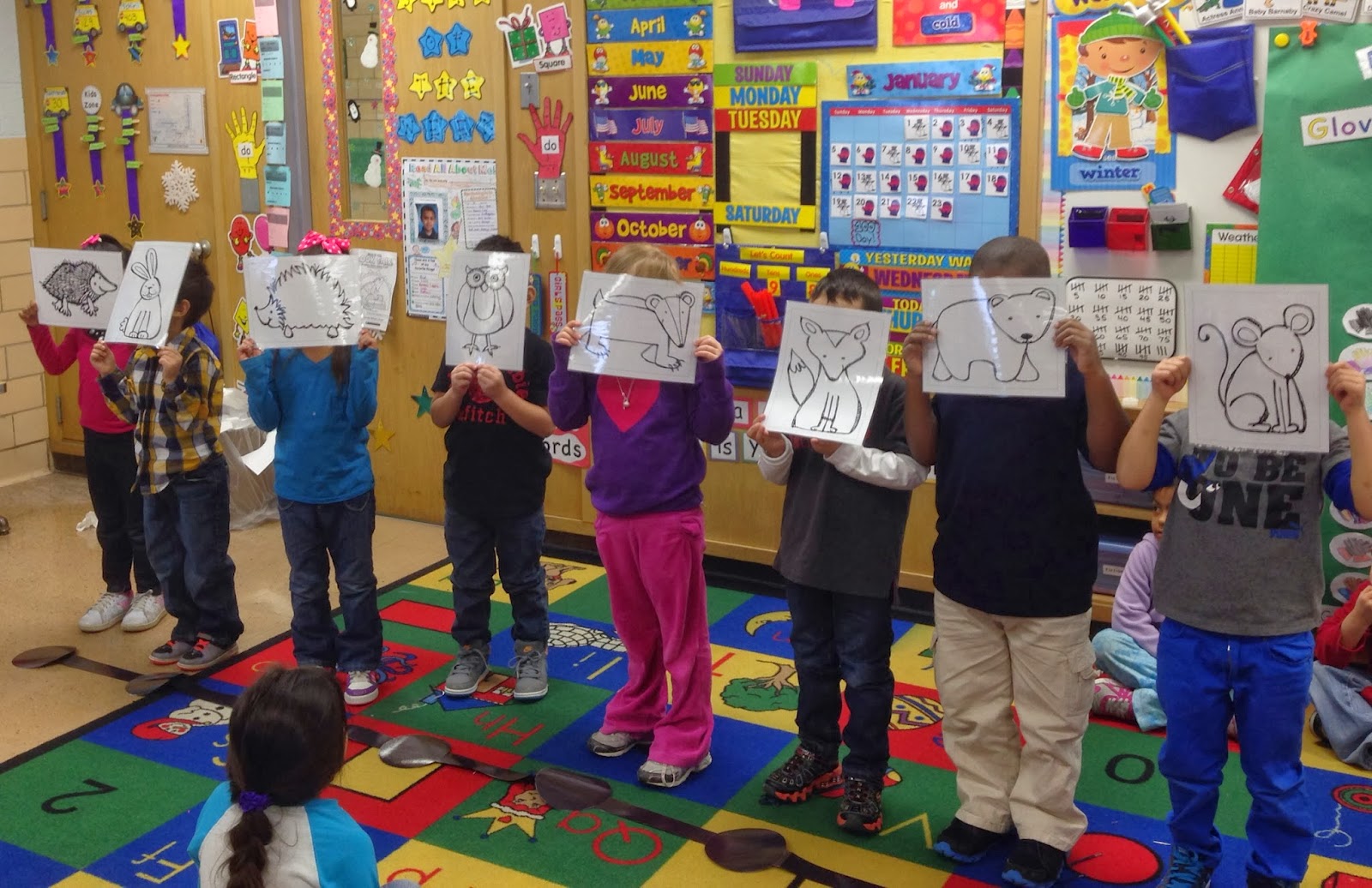 We began subtraction today! We acted subtraction stories out with the animal characters from ‘The Mitten’.