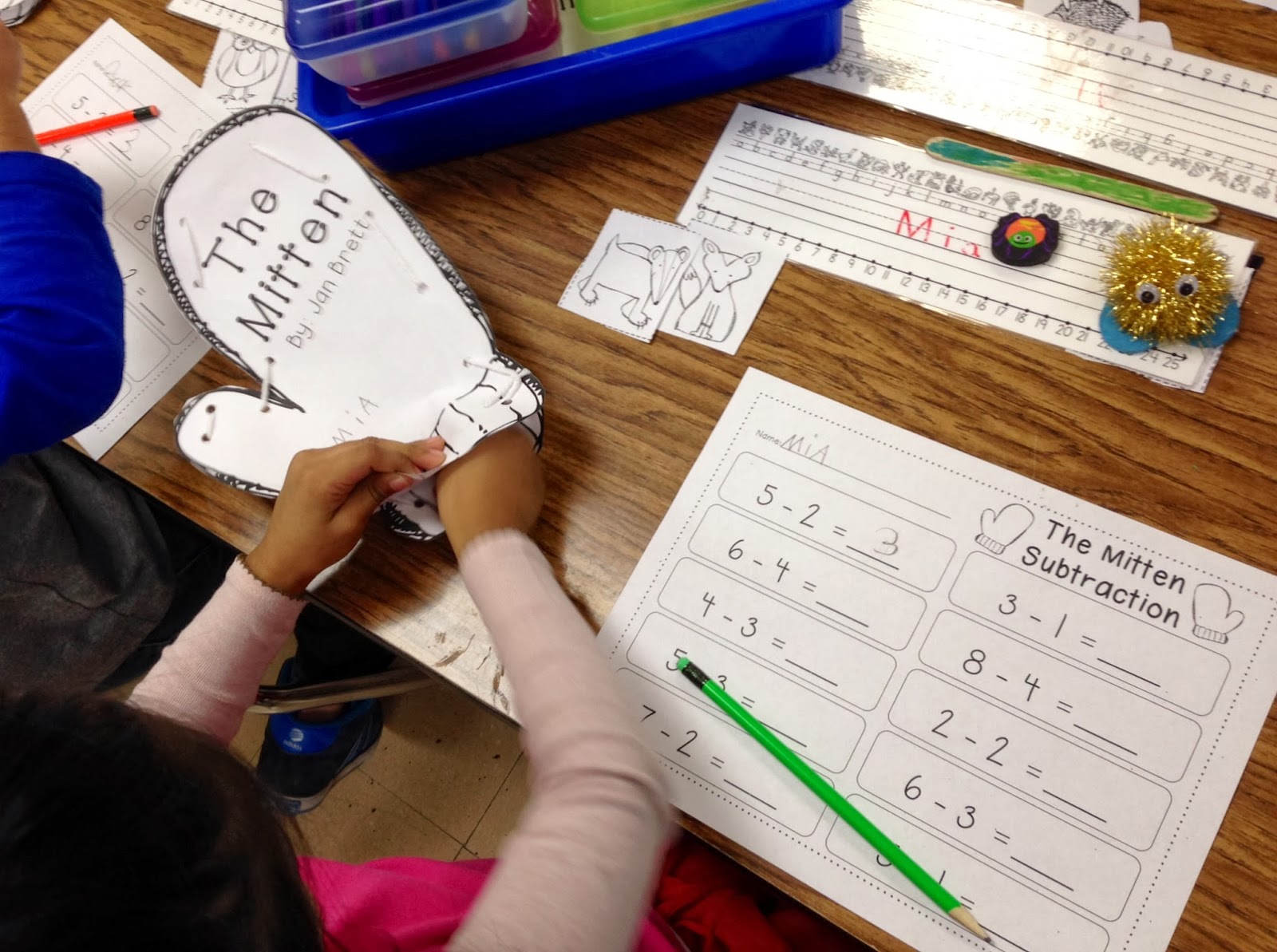 We made addition pop up mittens.