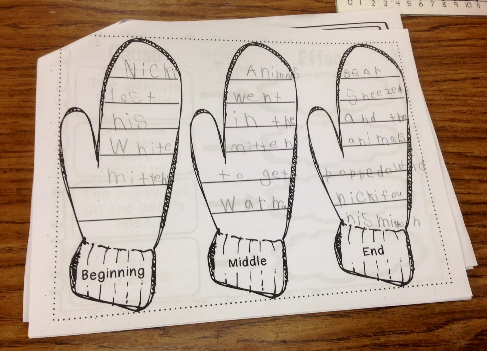 We talked about the beginning, middle, and end of the story, ‘The Mitten’ and worked on the next part of our story focus books.