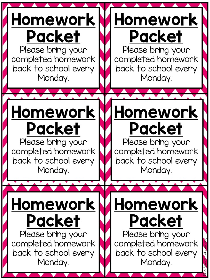 I love to use brown envelopes (6 1/2″ x 9 1/2″) for my homework packets. Each students has their own homework envelope that they are responsible for throughout the year.